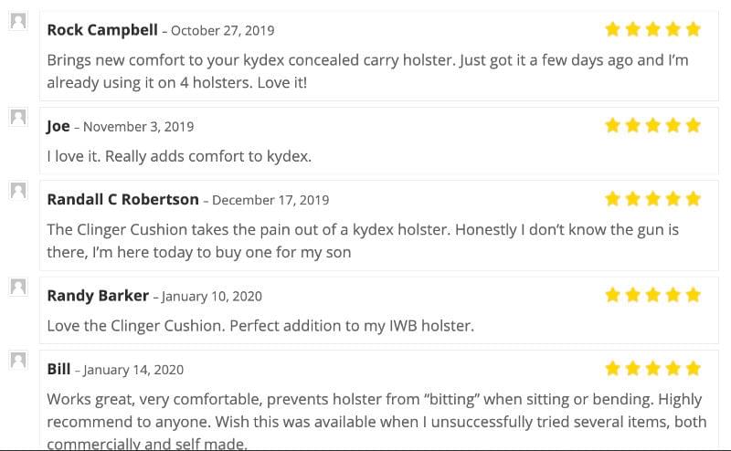 2. We know that our customers carry more often than concealed carriers who carry with different systems. Our holsters (when paired with the Clinger Cushion) gets people carrying EVERY DAY. That's our true goal. We want as many good guys with guns as possible. That's how we transform our communities.